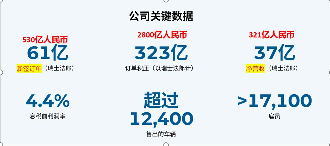 Stadler预计,在中期内,凭借稳定的供应链和超过50亿瑞士法郎的稳定销售额,其息税前利润率将提升至6%至8%。因此,中期业绩指引维持不变。