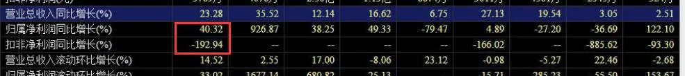 咱们一般可以通过归属净利润同比增长和扣非净利润同比增长的对比来识别。