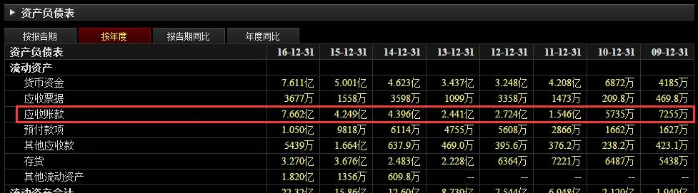 F10 - 财务分析 - 资产负债表 - 应收账款