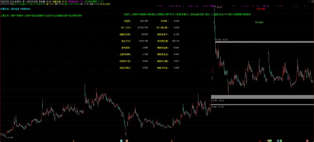 该指标是一个全面的基本面信息面板,直接在K线图上展示个股的所属板块、主营业务、市值规模及获利盘比例。可以通过复制源码粘贴在任意主图中!