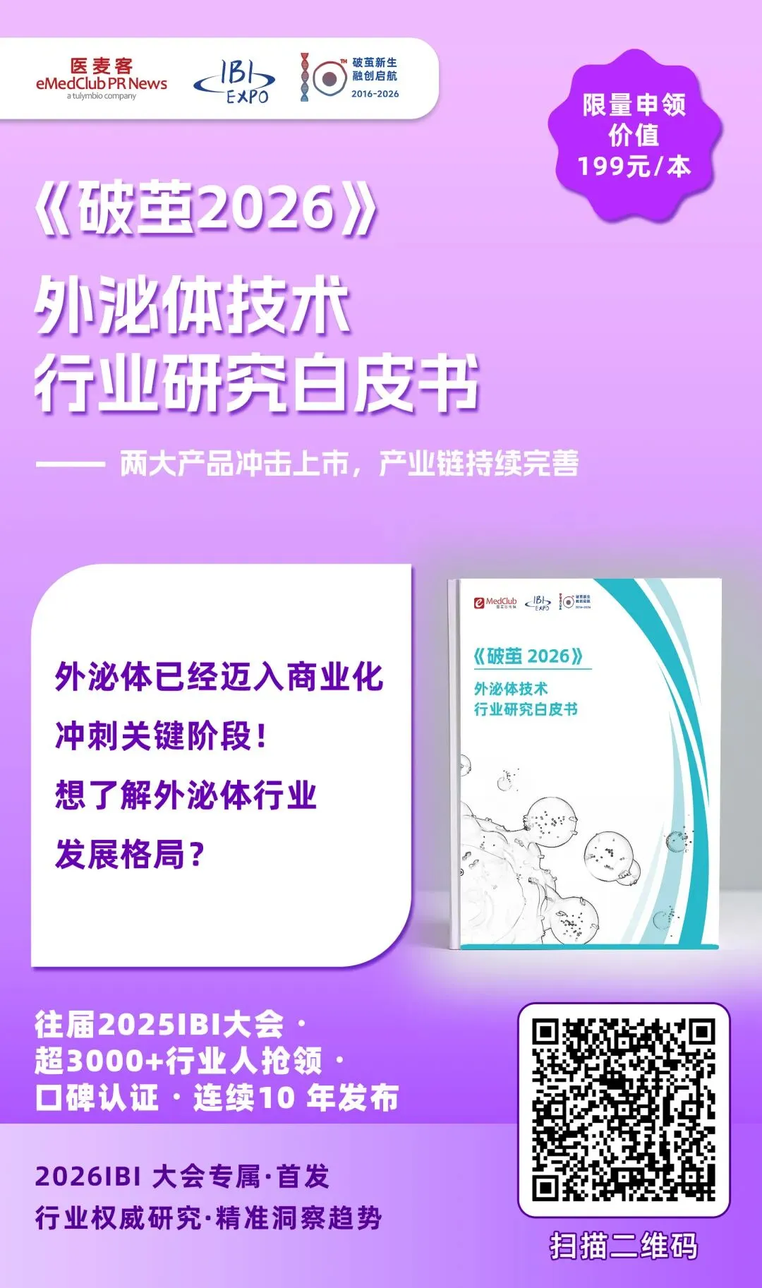 为此,医麦客精心编纂并正式发布 《破茧 2026·外泌体行业研究白皮书》 ,聚焦外泌体行业的前沿发展状况,旨在为行业从业人员提供精准的行业资讯,搭建交流与合作的桥梁,凝聚行业共识,共同推动外泌体行业高质量发展。