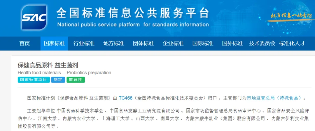 《保健食品原料 益生菌剂》国家标准计划(20243540-T-424).