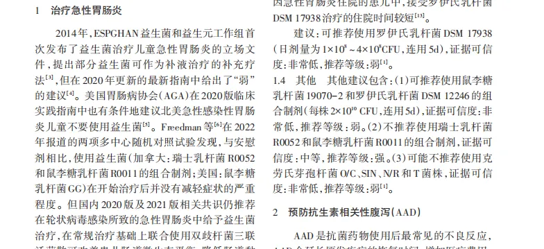 针对急性胃肠炎:可考虑使用LGG、布拉氏酵母菌、罗伊氏粘液乳杆菌DSM 17938,或鼠李糖乳酪杆菌19070-2和罗伊氏粘液乳杆菌DSM 12246的组合。