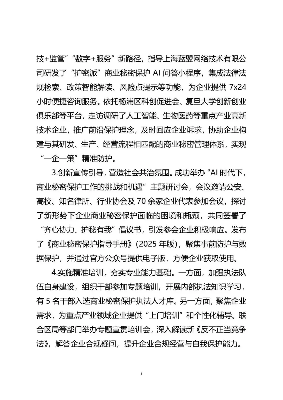白皮书还详细收录了市局执法总队及各区的实践案例。市执法总队通过强化执法、科技赋能、创新宣传等多维度提升保护效能,例如指导研发了护密派AI问答小程序。浦东新区依托立法优势,建立了行刑民衔接的工作机制,并聚焦集成电路、生物医药、人工智能三大先导产业提供精准保护。黄浦区则着力构建市区协同、跨域联动的保护机制。这些区域实践共同构成了上海商业秘密保护协同共治的生动图景,为形成更多元、更有效的保护模式积累了宝贵经验。