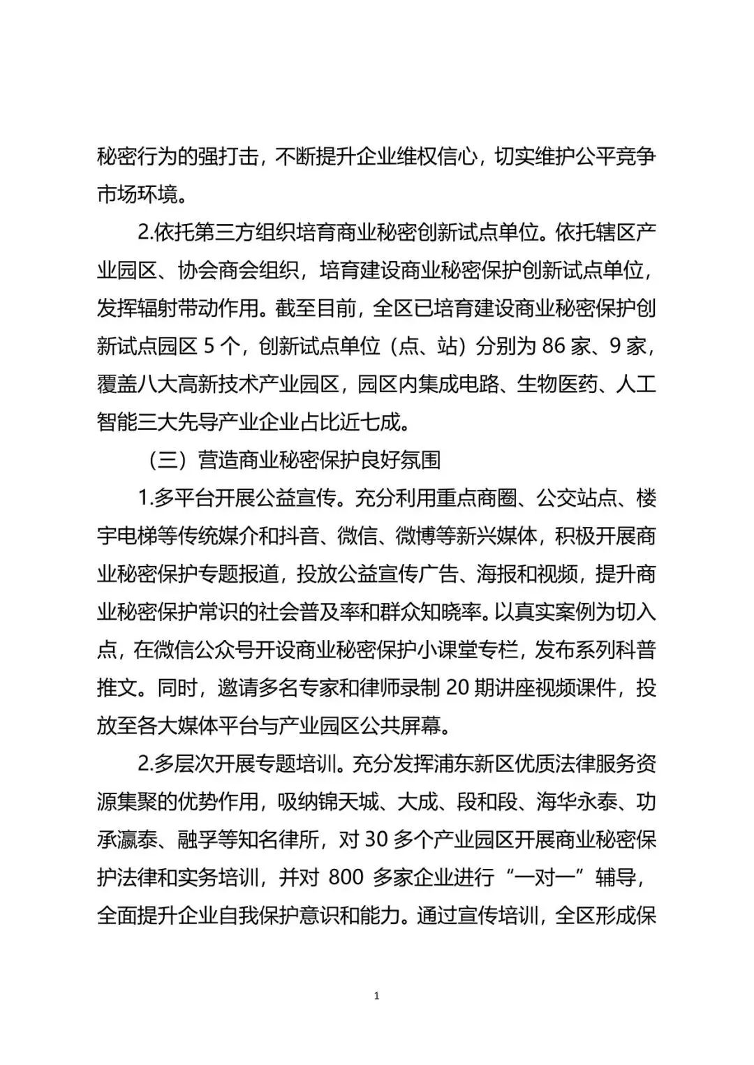 上海在商业秘密保护的顶层设计上实现了多项突破。全国首创将商业秘密保护创新试点与侵权案件查办等内容纳入《上海市优化营商环境条例》,为工作提供了法律支撑。浦东新区发挥立法优势,推动出台了《浦东新区加强商业秘密保护若干规定》,在举证责任、协同保护等方面取得制度性突破。全市还制定了年度工作要点和创新试点培育方案,构建起点线面结合的立体化保护体系。截至目前,浦东、奉贤、黄浦、闵行四区入选全国商业秘密保护创新试点地区,市、区两级累计培育创新试点园区和单位超过600家。
