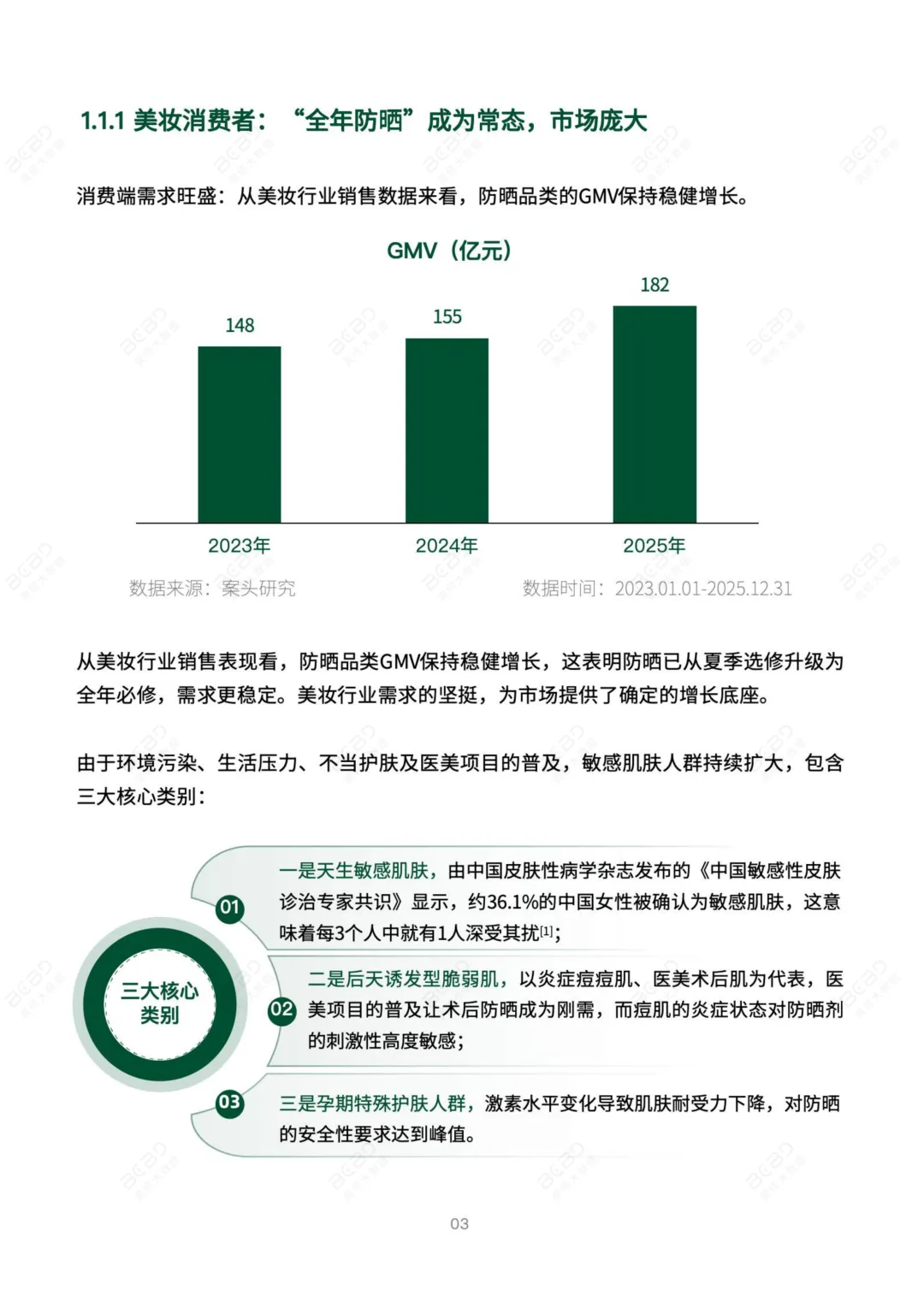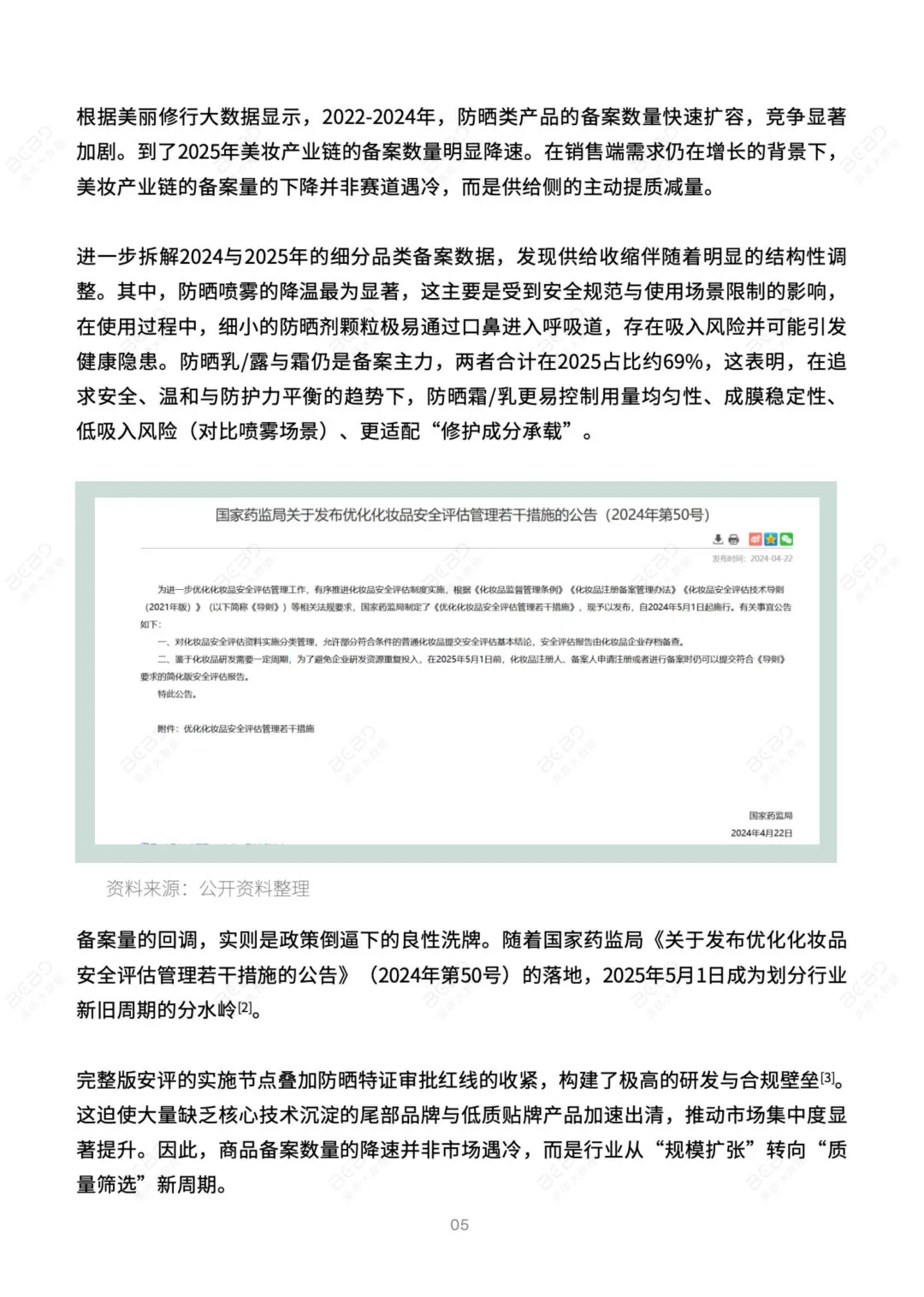 防晒作为皮肤健康管理的重要环节,正经历深刻变革。全球气候变暖、极端高温频发以及细颗粒物污染加剧,使防晒从夏季专属演变为全年必要行为。然而,消费者对防晒的担忧并未减少,尤其是敏感肌群体面临“越防越敏”的困境。数据显示,中国约36.1%女性为敏感肌肤,加上炎症痘肌、医美术后肌肤及孕期护肤人群,构成庞大的防晒需求基础。这些群体在追求高效防护的更关注产品的温和性与安全性。2025年,美妆行业进入筛选期,备案法规趋严与成分党认知提升,推动行业从规模扩张转向品质优选。在此背景下,物理防晒因其安全、稳定的特性重新受到关注。氧化锌作为皮肤科学界公认的敏感肌防护金标准,具备广谱防护力和天然抗炎作用,能够有效避免化学防晒剂带来的刺激风险,满足多种特殊肤质的防晒需求。物理防晒正逐步摆脱“厚重、假白”的刻板印象,通过现代工艺优化配方,实现轻薄透气的新体验。其核心价值在于构建安全、透明、高效的防晒体系,既保护皮肤免受紫外线伤害,又兼顾屏障修护功能。防晒将从“护肤加分项”转变为“健康必选项”,品牌需以消费者需求为核心,回归配方本质,推动行业向更理性、更科学的方向发展。