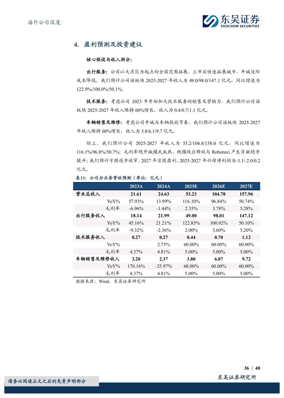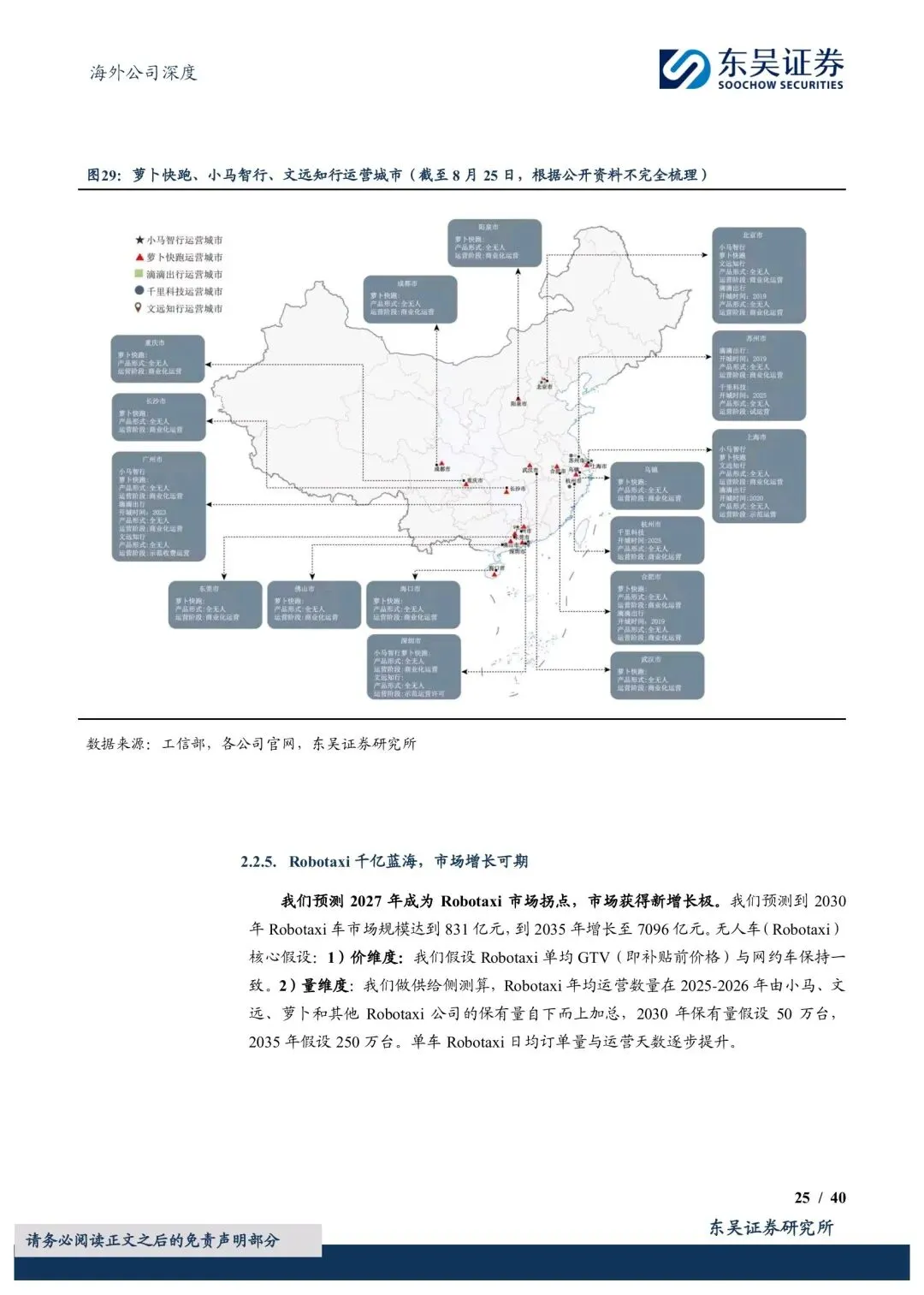 公司以全球首个有人/无人混合运营平台为核心差异化优势,当前Robotaxi运力超300辆,运营站点突破1万个。推出“Robotaxi+”开放战略,不自研L4技术,整合行业头部智驾资源打造自动驾驶数据闭环,未来5年计划投入10亿级资金搭建运维网络,形成支撑10万辆Robotaxi的运维能力。