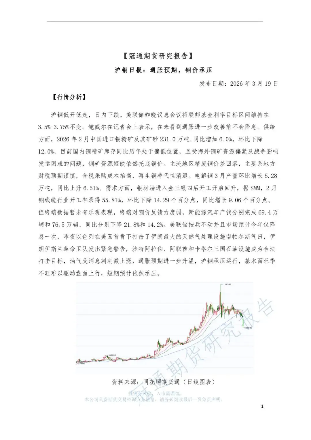 冠通期货研究报告--沪铜日报:通胀预期,铜价承压