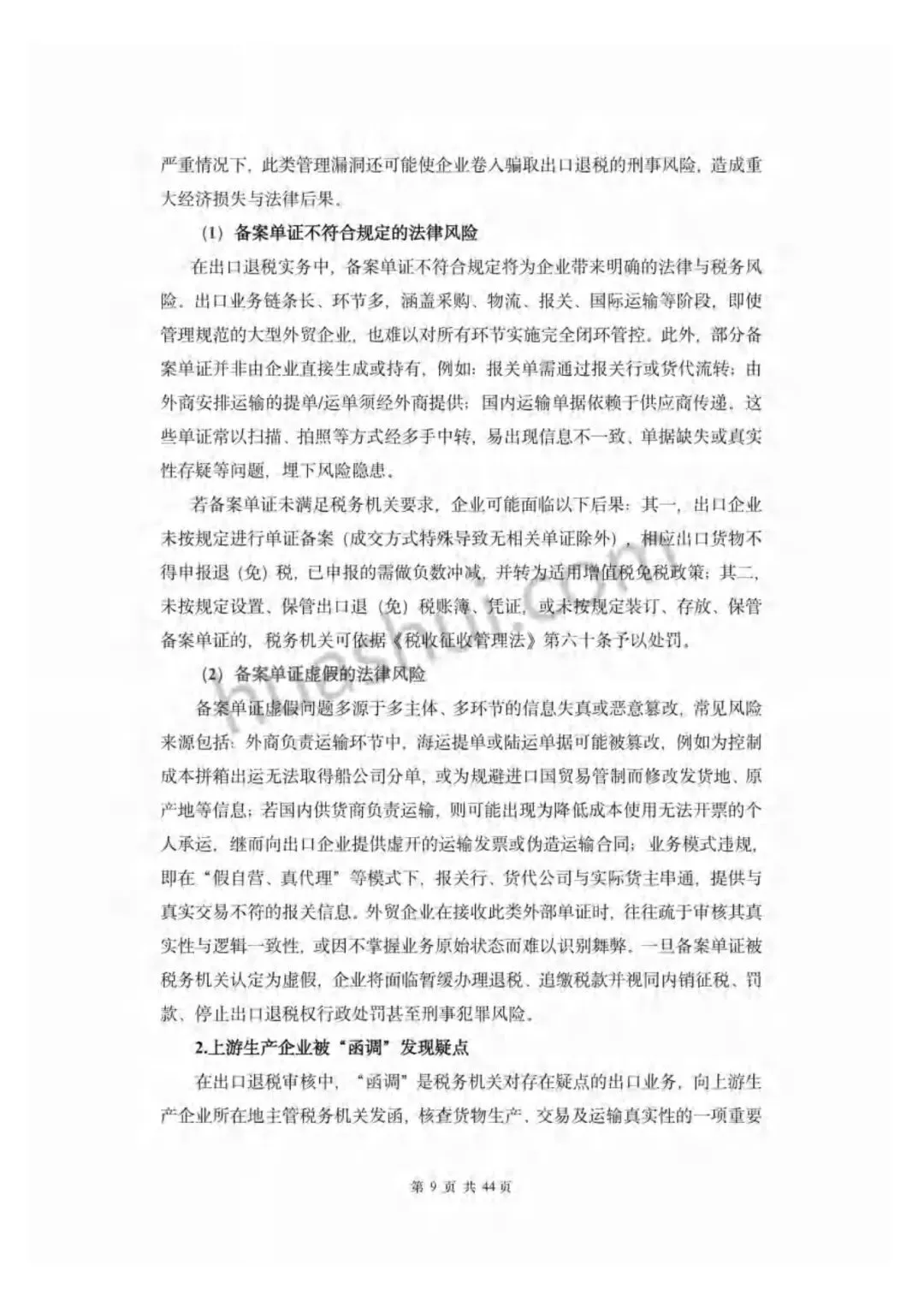:备案单证虚假或不合规易导致退税被追缴、行政处罚甚至刑事风险;上游生产企业被 “函调” 发现疑点可能引发退税暂缓或追责;“假自营真代理”“四自三不见” 模式被明令禁止,易触发骗税风险;增值税专用发票异常或虚开直接影响退税资格;现金结汇、非法买汇易引发虚开骗税质疑;合作出口因证据不足可能被误判为骗税。 - 骗税高发领域呈现专业化、隐蔽化趋势