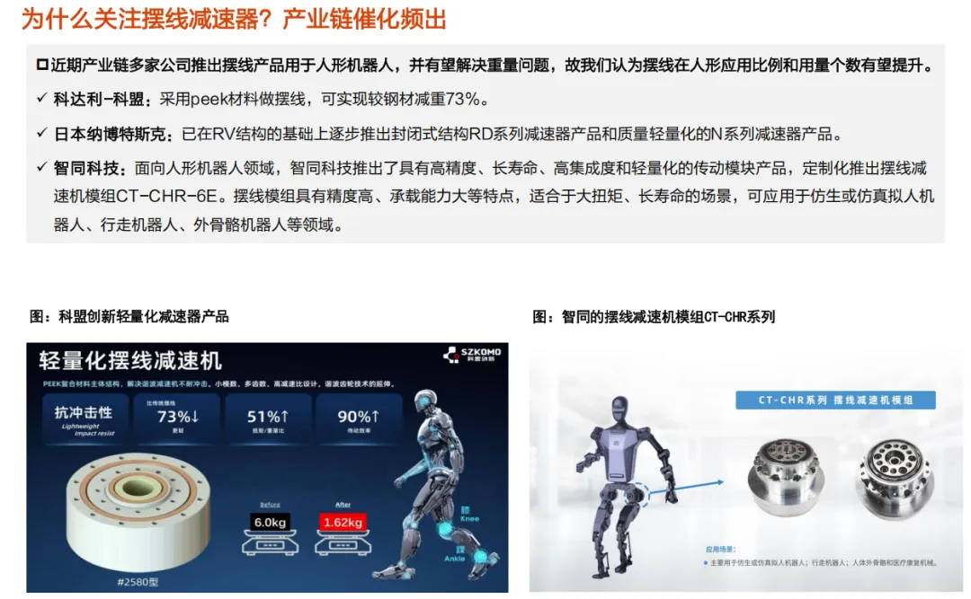 摆线减速器存在重量偏大、制造工艺要求高的挑战;建议发力轻量化材料与精密工艺研发,把握国产替代与机器人放量机遇。