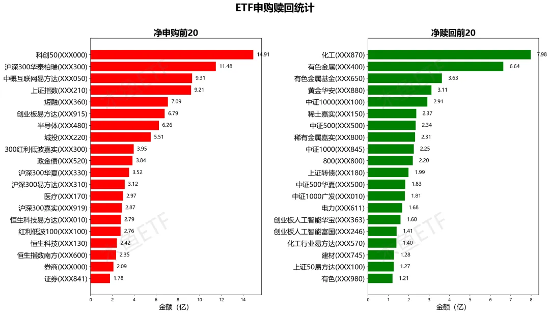ETF申赎资金方面并未有明显亮点,大主力没有发力。