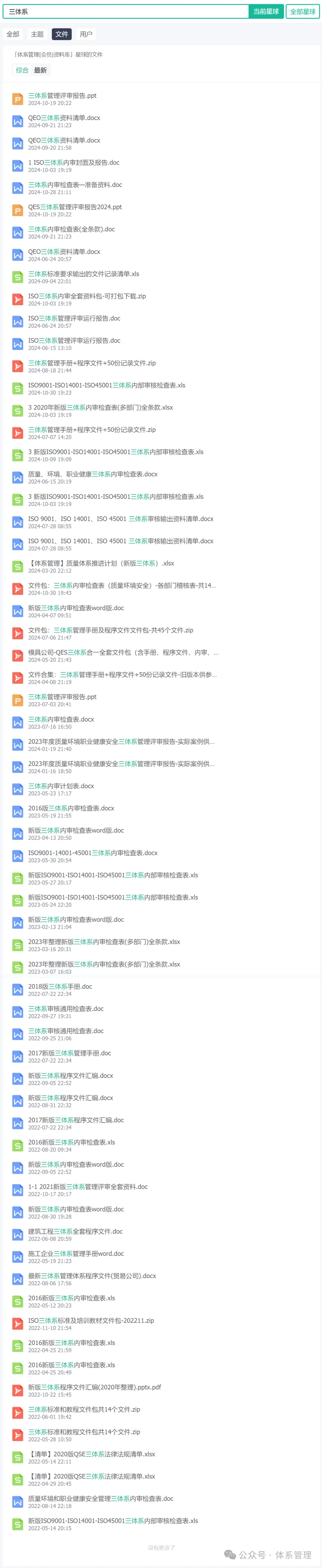 以上是体系管理资料库内部分内容截图,库内累计分享资料已超过30000+份,加入后即可通过电脑网页版、APP自助下载!