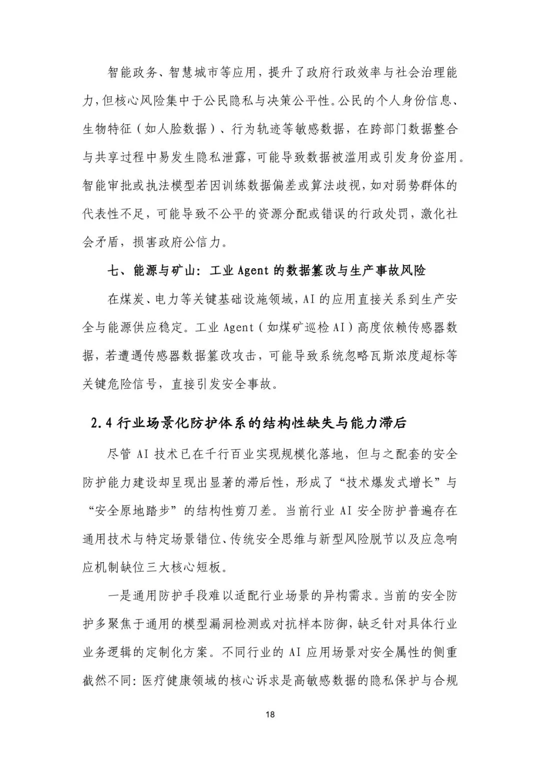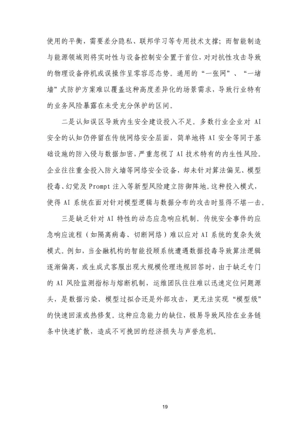通用防护手段无法适配行业异构需求,企业重传统安全、轻 AI 内生安全,缺乏动态应急响应机制,形成 “技术快、安全慢” 的结构性缺口。