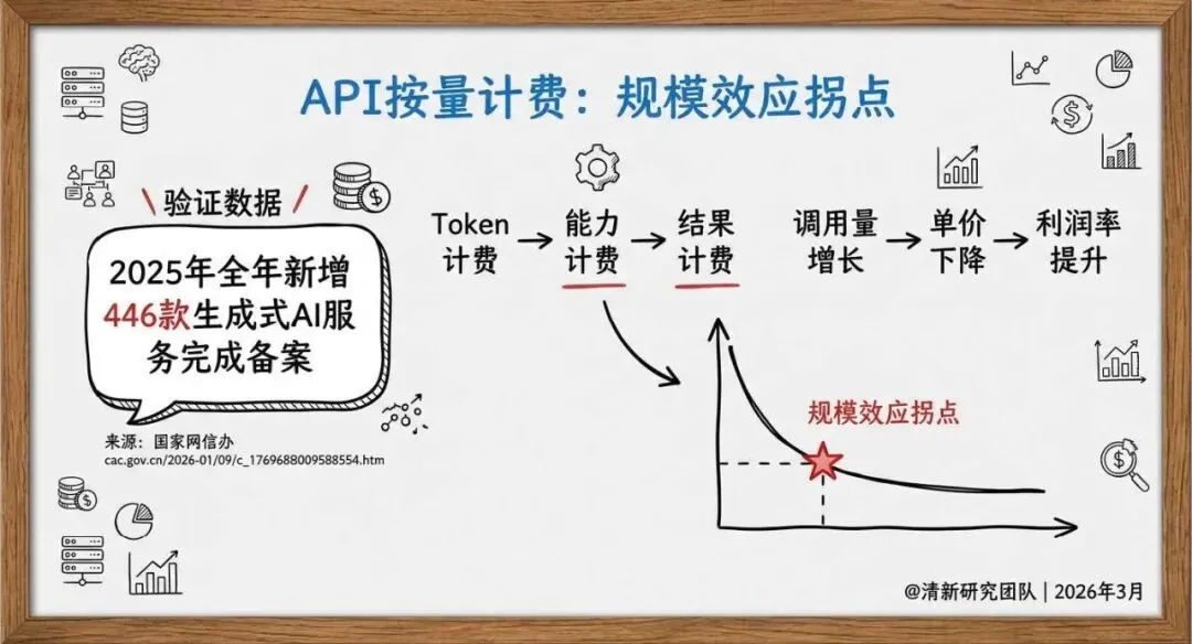 API 按量计费:从按 Token 计费向按能力、结果计费升级,随着调用规模扩大迎来规模效应拐点;