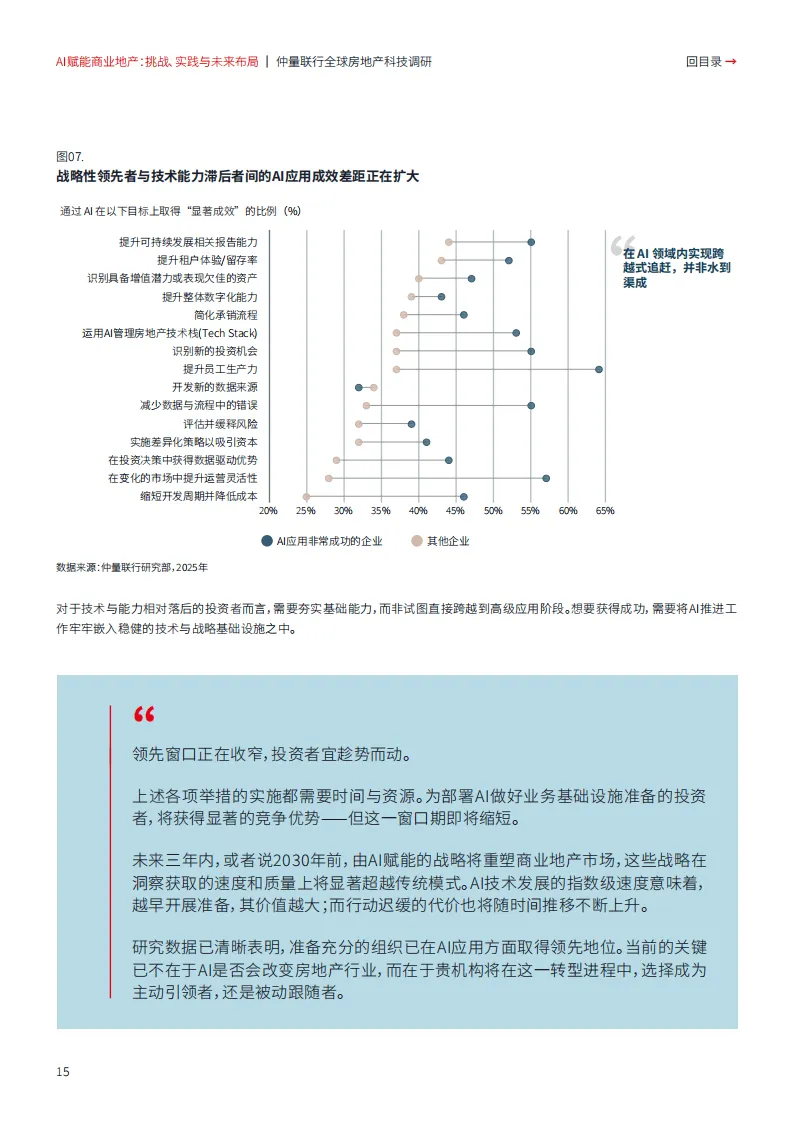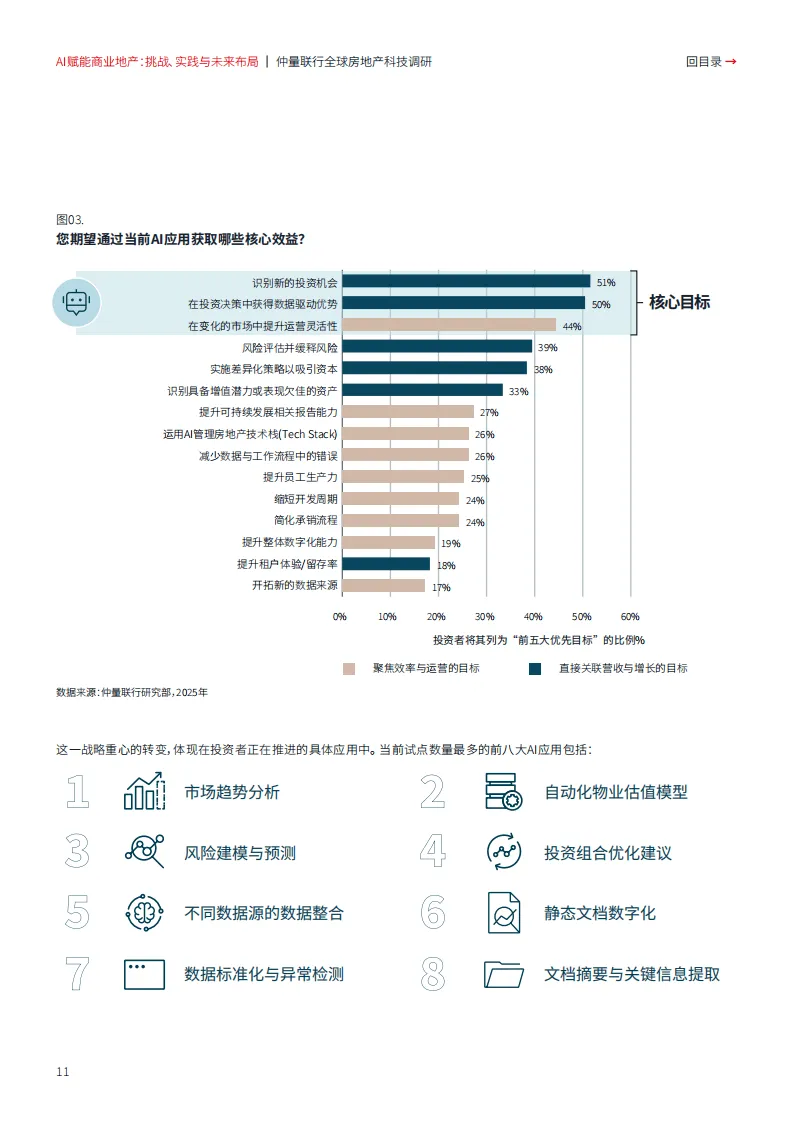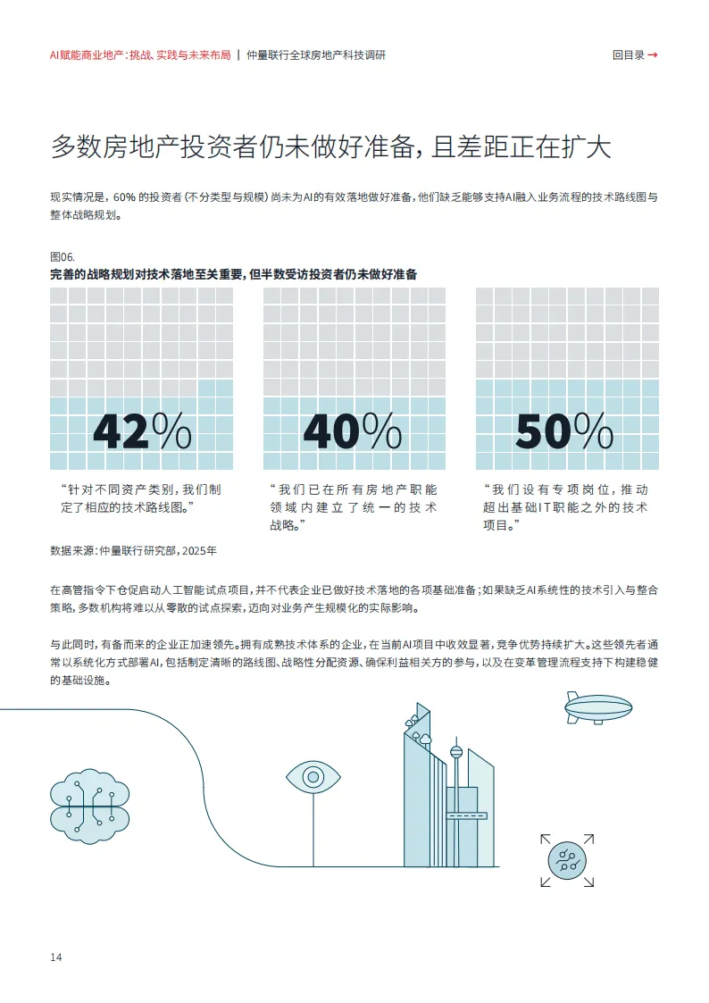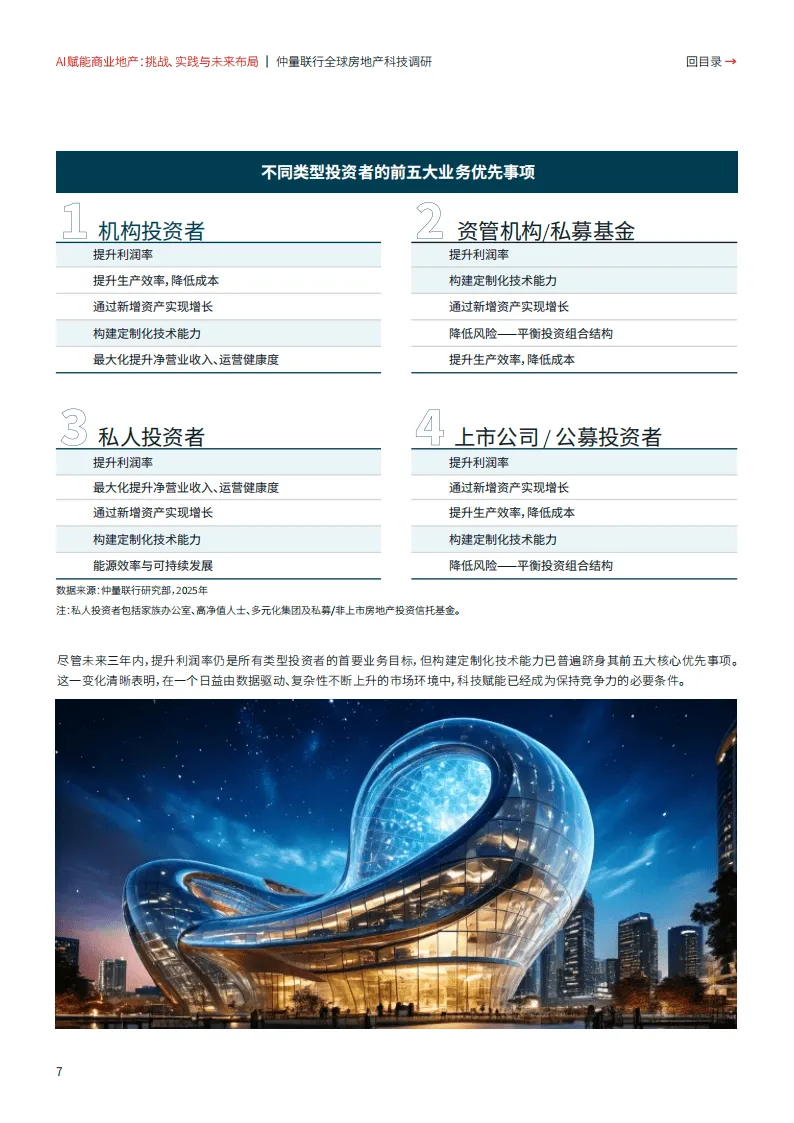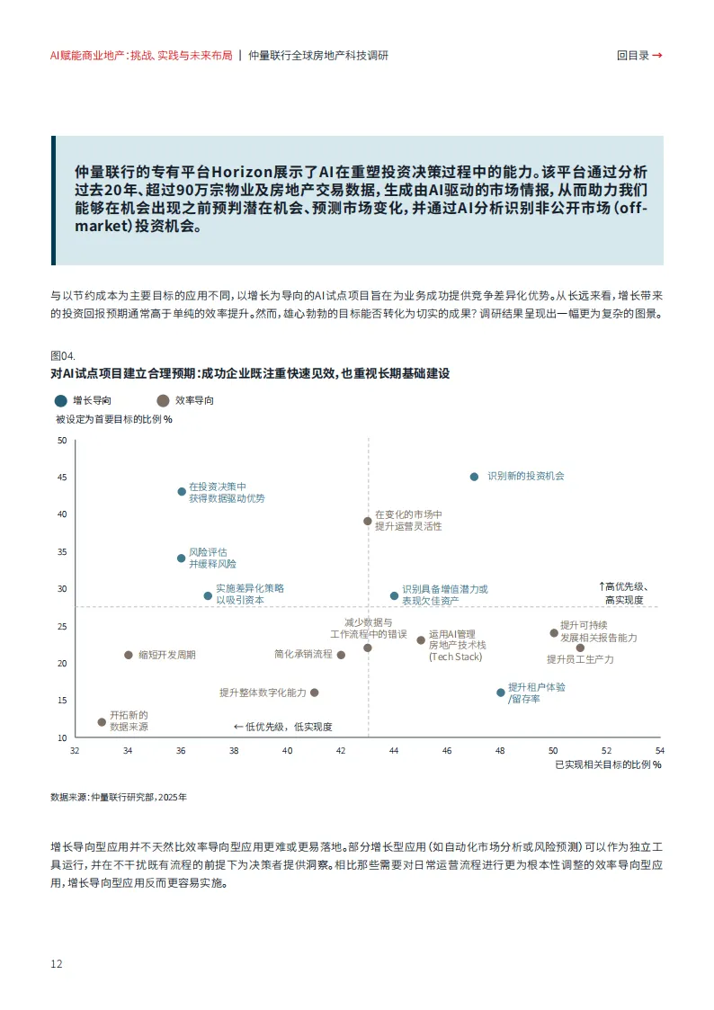 仲量联行2026年全球房地产科技调研聚焦AI赋能商业地产的发展现状、实践路径与未来趋势,基于覆盖16个国家和地区的1500余位行业高层决策者调研数据,解析了AI在房地产投资和企业不动产领域的落地图景,尤其针对中国商业地产的AI应用特征给出了针对性洞察。