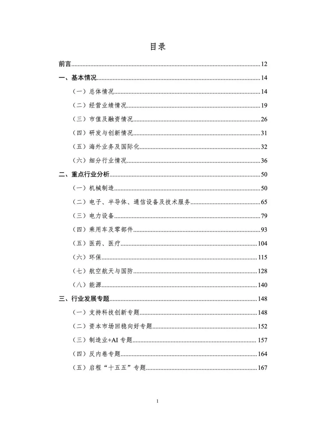 该报告由中国上市公司协会发布,基于 2024 年 A 股高端制造业上市公司数据,系统分析行业总体规模、经营业绩、市值融资、研发创新、海外业务及细分行业发展现状,重点聚焦机械制造、电子半导体、电力设备、乘用车及零部件等八大核心领域,探讨新质生产力引领下行业高端化、智能化、绿色化转型路径,为政策制定者、产业界、投资界提供全面的行业洞察与决策参考。