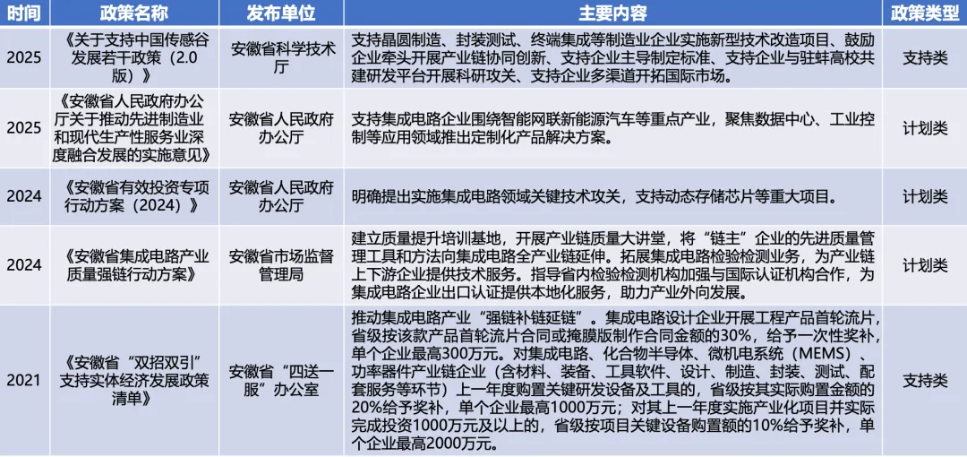 政策支持方面,我国近年来陆续出台了《新时期促进集成电路产业和软件产业高质量发展的若干政策》《关于深化科创板改服务科技创新和新质生产力发展的八条措施》《国家集成电路产业投资基金三期设立方案》等政策,安徽省和合肥市也相继发布了《安徽省人民政府办公厅关于推动先进制造业和现代生产性服务业深度融合发展的实施意见》《安徽省集成电路产业质量强链行动方案》《合肥市加快推进集成电路产业发展若干政策》等文件,引导集成电路产业加快关键技术攻关,支持企业做大做强。并且在《中共中央关于制定国民经济和社会发展第十五个五年规划的建议》中提出,要动态梳理“卡脖子”技术清单,推动集成电路、新型显示、工业母机、高端仪器、基础软件、先进材料、生物制造、核心种源等重点领域关键核心技术攻关取得重大突破。总的来说,十五五期间集成电路产业依然是我国重点布局发展的新兴支柱产业,要持续强化关键核心技术攻关,推动芯片自主研发实现新突破。
