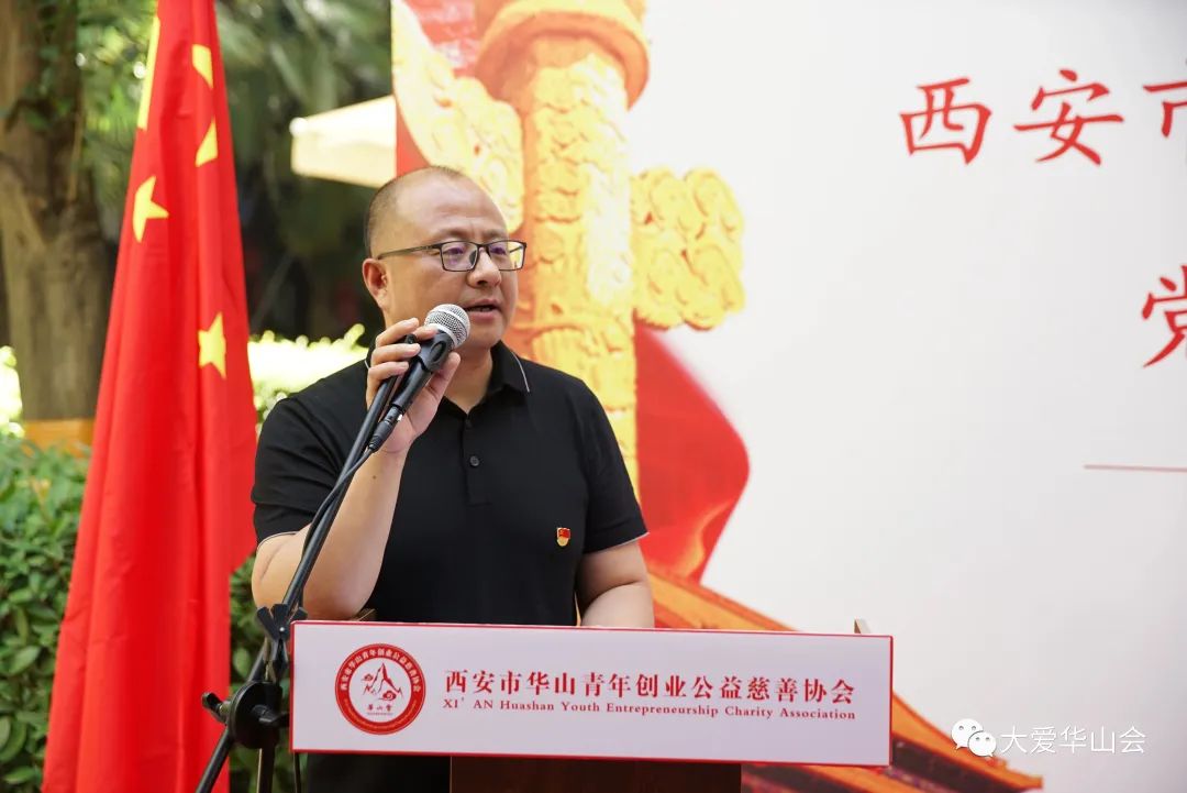 华山会党支部书记、会长成宏伟发言:华山会党支部自成立以来紧紧围绕习近平新时代中国特色社会主义思想指导建设,不断提升“两个覆盖”的党建工作成果。华山会作为西安市民政局社会组织党委党建工作指导站站长单位,今后将不断提升基层党组织的规范化指导建设,并致力于从“标准化”向“模范化发展,充分发挥先进党组织的示范带头作用,助力社会组织的党建水平不断提高。最后,希望我们所有的商协会都能积极成立党组织,积极向上级党委靠拢,时刻响应党和国家的号召,充分发挥社会组织参与社会治理的带头作用,为西安市社会组织党委建一个“党建科技十”的新名片,吸引更多的社会力量一起善行天下,筑梦百年!