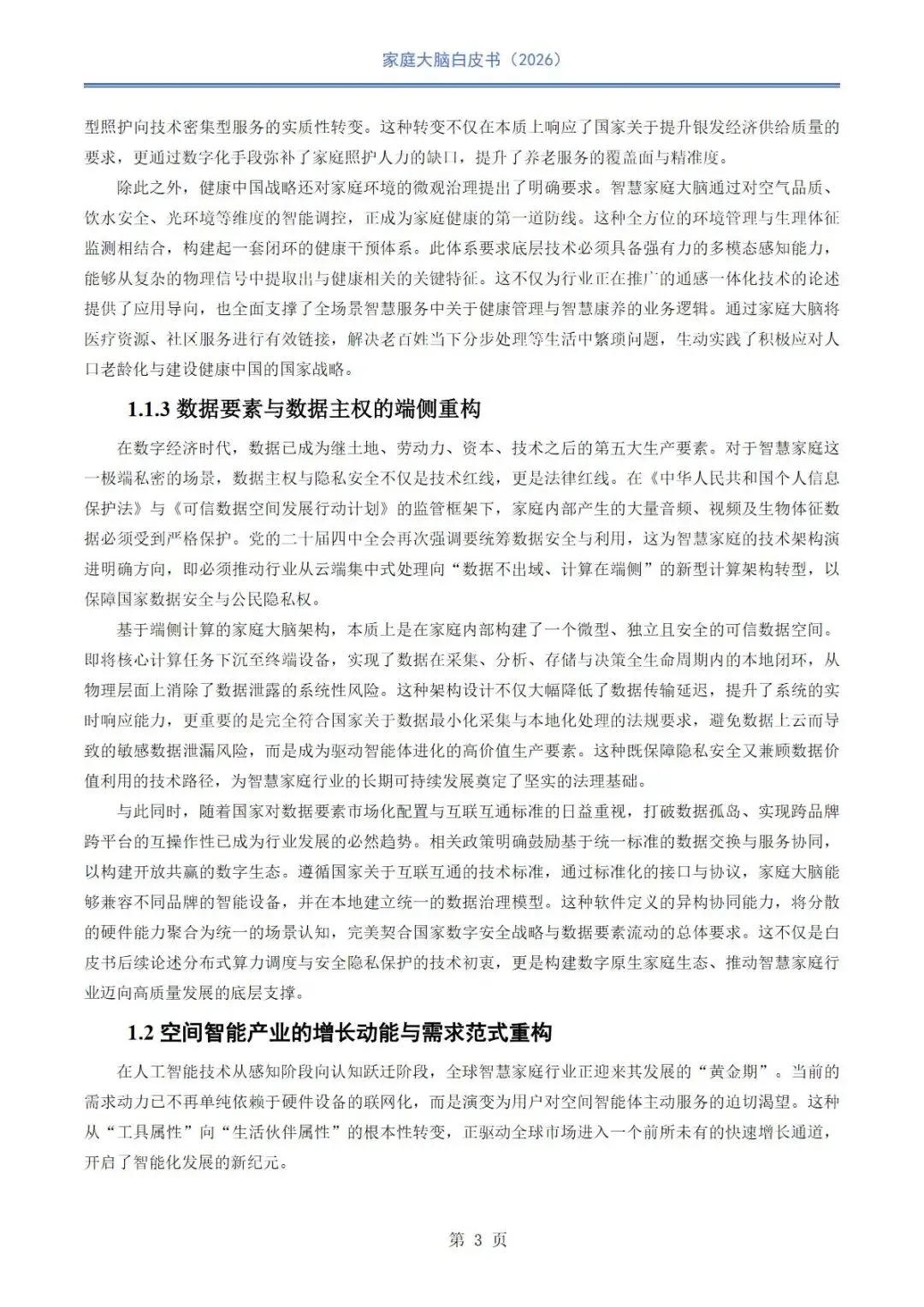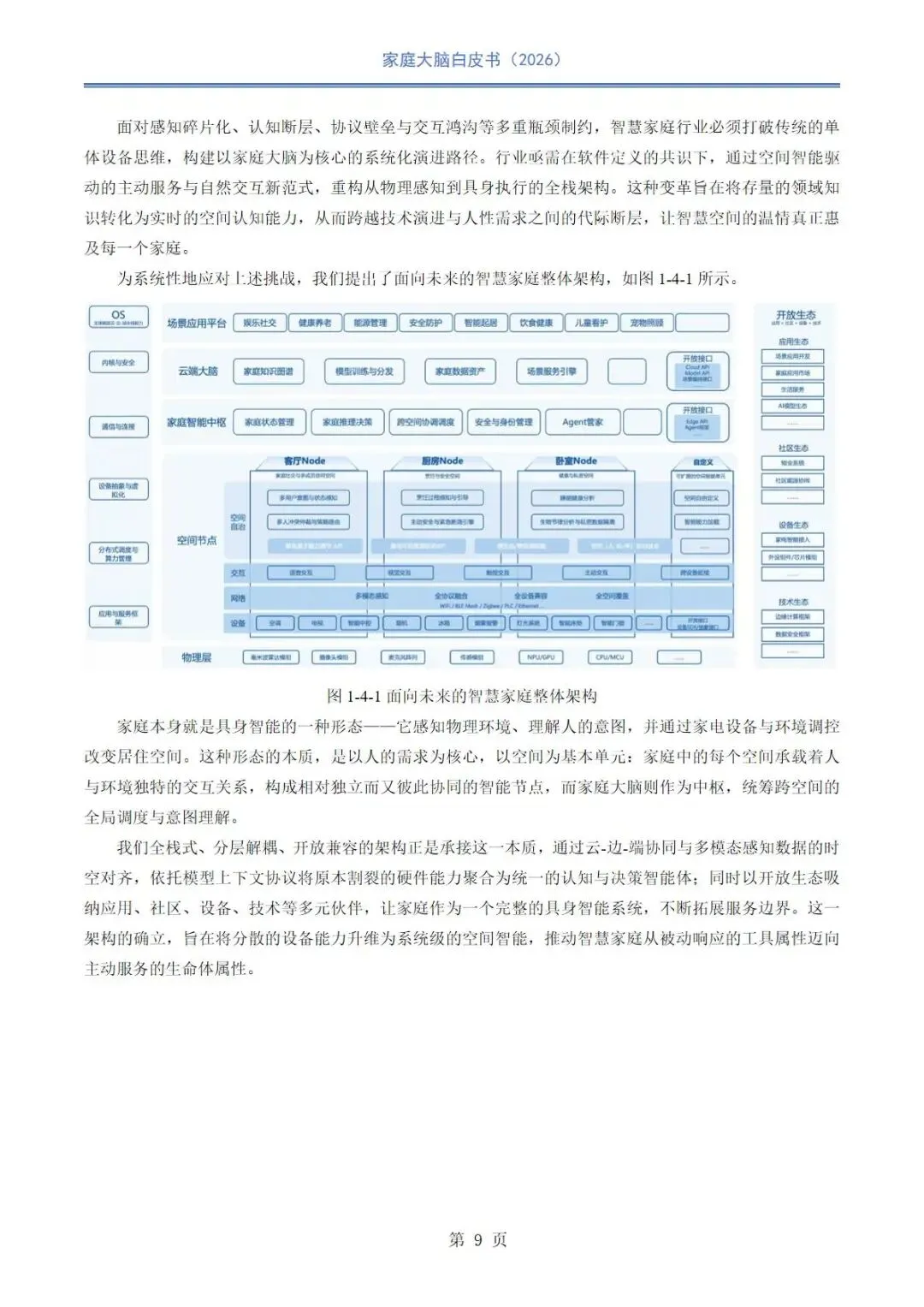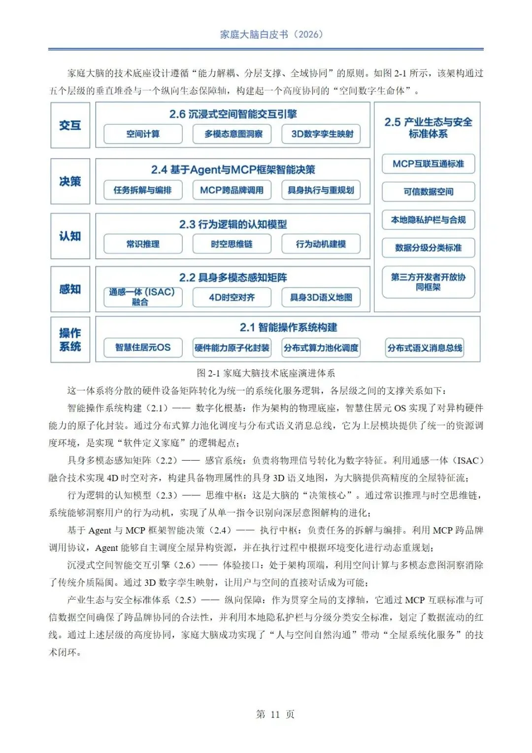 当前智慧家庭行业正从万物互联向空间智能、认知智能深度转型,在国家战略、人口结构与消费升级的多重驱动下,传统设备联网模式难以满足全龄化、主动式服务需求,行业面临感知碎片化、认知断层、生态壁垒、交互滞后等核心挑战。家庭大脑作为空间智能核心中枢,依托通信、感知、认知与决策深度融合,以数字孪生、具身智能、多模态交互为技术底座,构建跨品牌互通、本地数据闭环、主动服务的数字原生家庭生态,推动居住空间从物理容器向具备意图洞察、情感共鸣与全生命周期呵护能力的智慧生命体演进。本报告系统阐述家庭大脑技术架构、场景实践、商业路径与未来方向,为空间智能落地与行业协同发展提供理论支撑与实践参考。