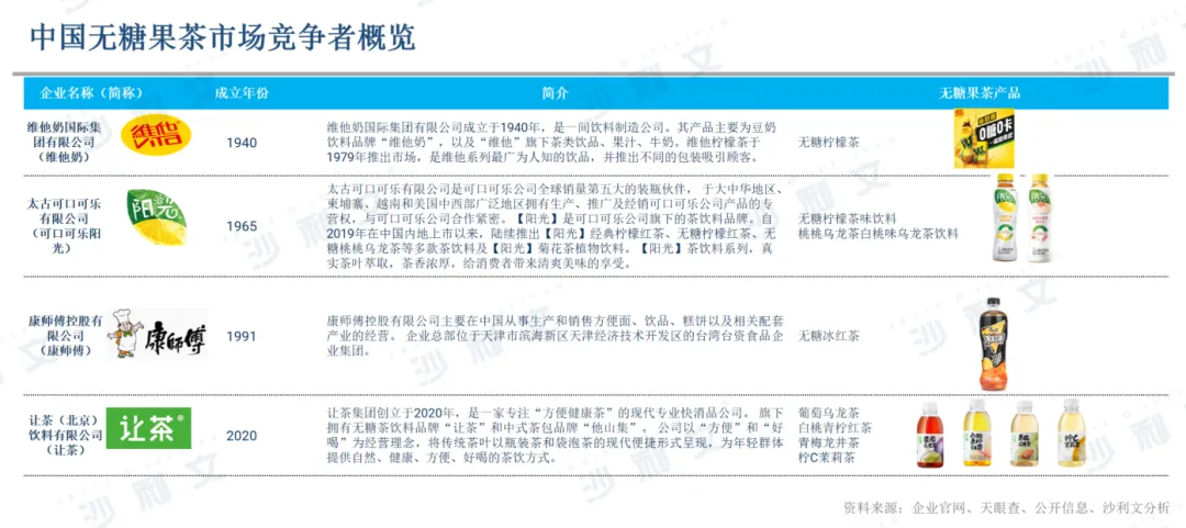 按2023年及2024年上半年无糖果茶销量计,领先的企业包括可口可乐阳光、维他、让茶,其中让茶排名第三。