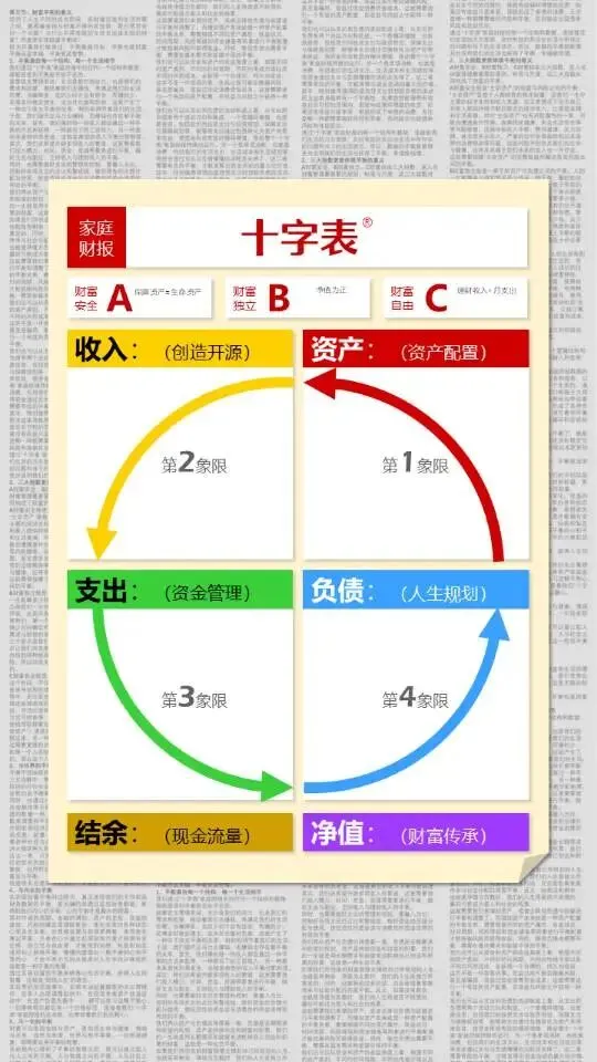 学会用“资产、负债、收入、支出”四个象限的循环流转,来有依据的构建稳固的人生底盘。