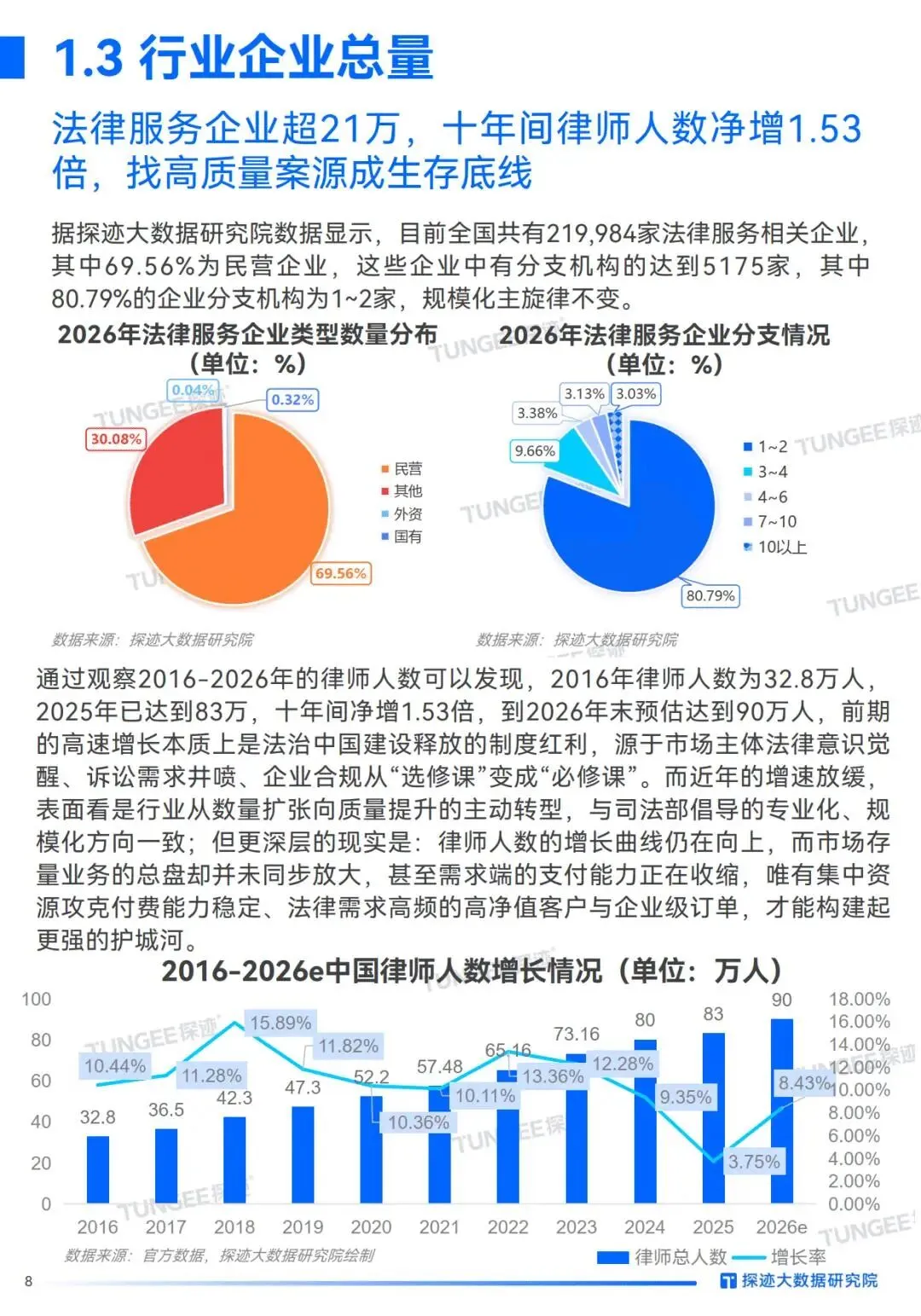 观点2:全国法律服务企业突破21万,长三角律师总数超18.55万,案源压力之下律师应用专业口碑和新获客渠道破局。