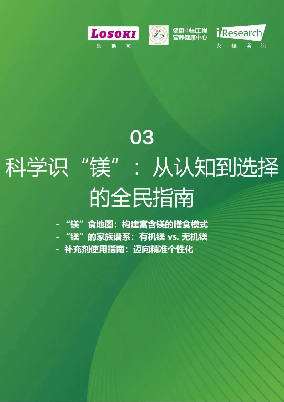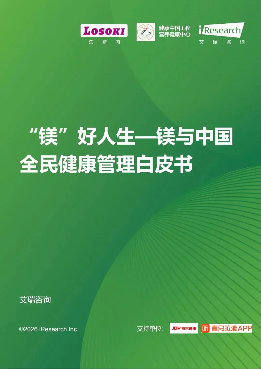 近日,艾瑞咨询联合乐斯可发布的《镁与中国全民健康管理白皮书》,揭开了中国国民镁缺乏的现状,也给出了全生命周期的科学补镁方案,今天就为大家一站式解读这份干货满满的报告,让每个人都能解锁“镁”好人生!