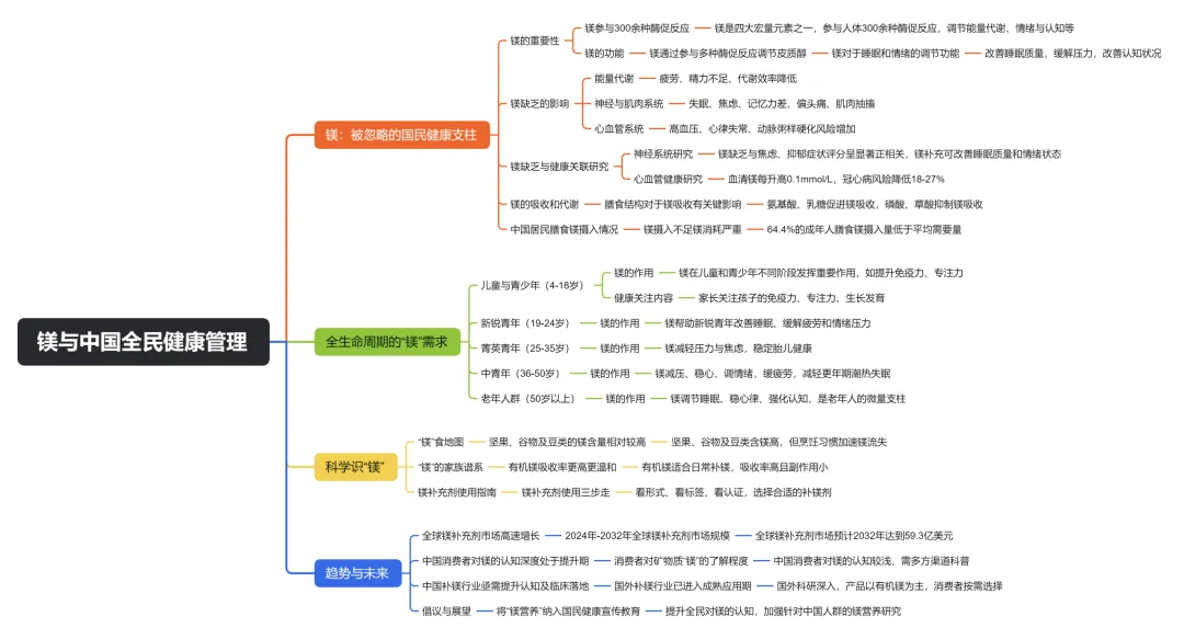 随着国民健康意识的提升,补镁逐渐从“小众需求”成为“全民刚需”,中国补镁市场正处于快速发展的启蒙期,同时也呈现出诸多新趋势、新需求。
