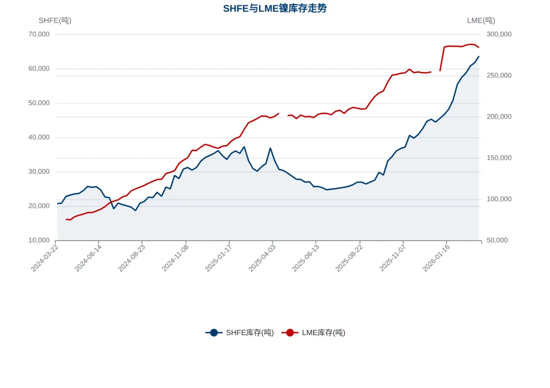 库存水平是判断供需实际松紧程度的最直接指标。当前镍市面临SHFE和LME双交易所库存同步走高的局面,这是价格承压的重要客观依据。