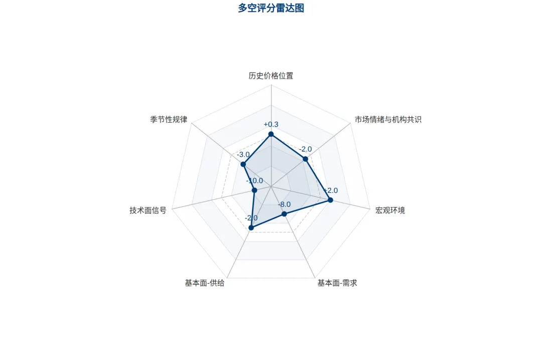 本报告采用七维度量化评分框架,从多个视角系统评估镍的多空力量对比。正分代表看多镍价的因素,负分代表看空。各维度权重根据其对镍价的影响力进行差异化设置,其中基本面(供给和需求各±20分)权重最大,反映了基本面是决定商品价格中期趋势的核心驱动力。