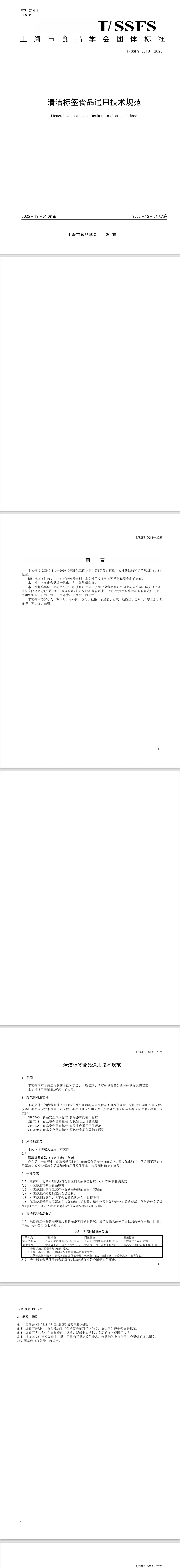 去年 12 月,上海食品学会正式发布《清洁标签食品通用技术规范》团体标准。该标准明确了清洁标签的术语定义、基本要求、产品分级及标签标识规范,内容全面、实操性强,对行业具有很高的参考价值。现将标准原文附后,供业内人士及感兴趣的朋友查阅参考。