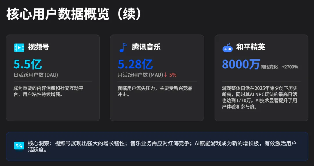 这些相当于腾讯的基本盘,≈传统公司的销量,量没增加 意味着 高增长是在现有用户、现有留存时长上挖掘潜在价值