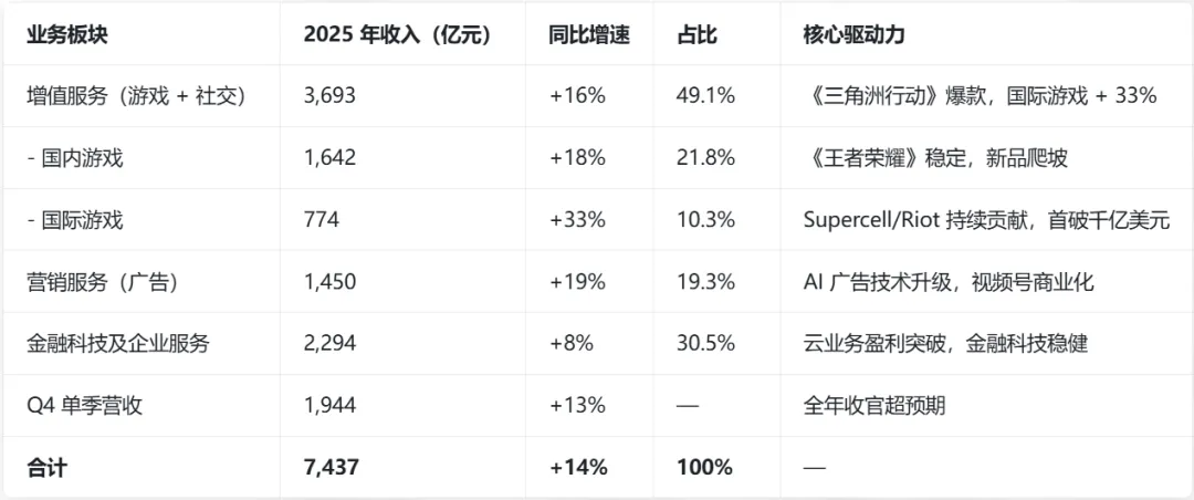 国内市场:收入1642亿元,同比增长18%。增长动力来自《三角洲行动》《无畏契约》及《王者荣耀》《和平精英》等长青游戏的稳健表现。