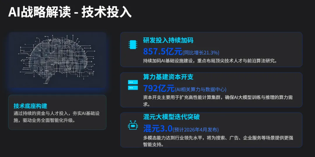 管理层在业绩会上明确表示,2026年AI投资将较2025年翻倍(预计资本开支1,500亿+,占今年净利60%左右),回报周期怎么样、能不能转化为盈利能力 既可能是机会、也可能是风险