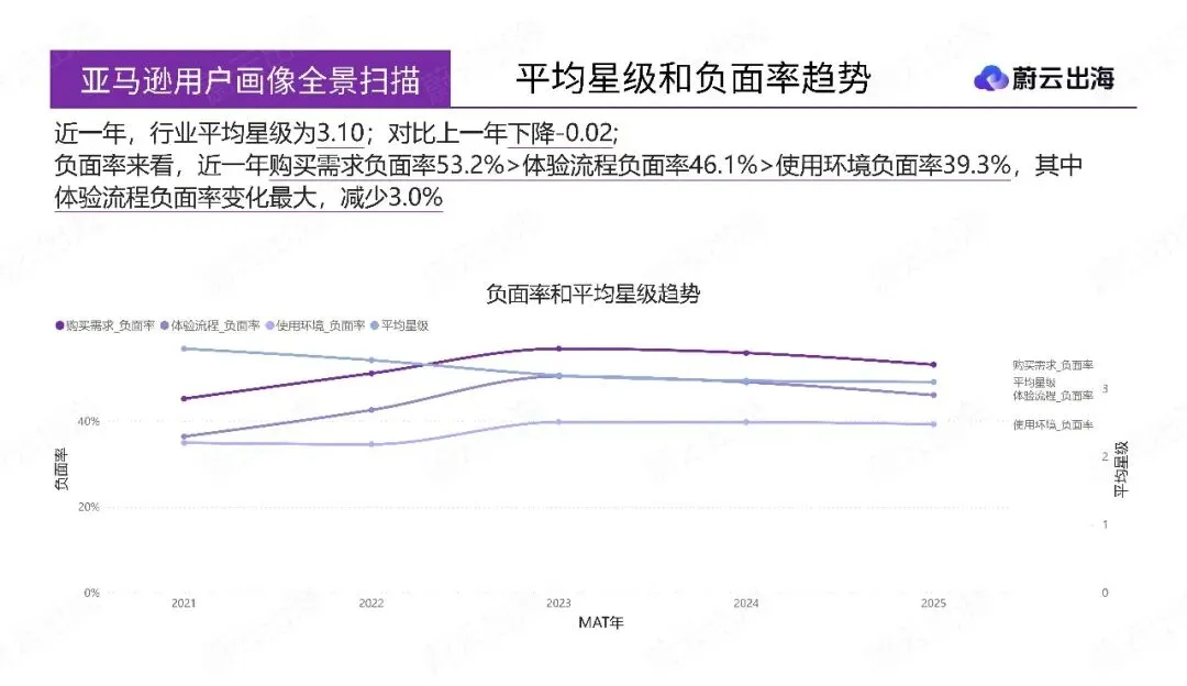 报告对2021年至2025年亚马逊美国站扫地机器人品类进行了全面分析。核心结论显示,养宠家庭、性价比追求者和旧设备换新用户构成核心消费群体,其普遍痛点集中于复杂环境下的导航失灵、硬件耐用性及电池衰竭等问题。