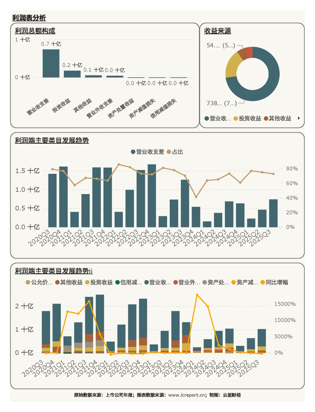 1)营收保持稳健增长,单季度主业盈利出现阶段性波动,但累计盈利仍实现正向增长,投资收益贡献提升有效对冲了短期盈利压力,盈利结构较为多元;