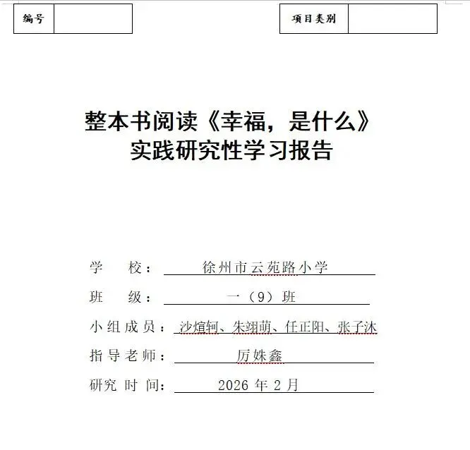 项目化学习以学生为主体,立足真实生活情境,通过驱动性问题、探究任务、合作实践等方式,让学生在完成项目的过程中深度阅读、自主思考、动手实践,契合一年级学生具象思维、爱探索、喜动手的年龄特点。本次研究以一年级绘本《幸福,是什么》为整本书阅读载体,结合儿童对“幸福”的天然好奇,设计层层递进的探究项目,让学生在阅读绘本、讨论交流、动手创作、生活实践中读懂故事、理解幸福、表达感受,将整本书阅读从单一的文本阅读,转化为沉浸式、体验式、实践式的综合学习活动,既落实低学段整本书阅读教学要求,又培养学生的阅读素养、语言表达、思维能力与积极情感,实现语文学习与生活德育、心理健康教育的融合。