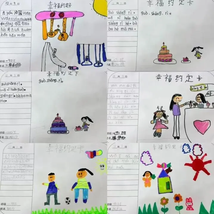 3.动手与创作能力提升:完成幸福捕捉袋、表情卡、约定卡、感谢卡、幸福锦囊等各类作品,学生的绘画、手工、文字表达(拼音+简单汉字)能力得到锻炼,审美与创造意识显著提升。