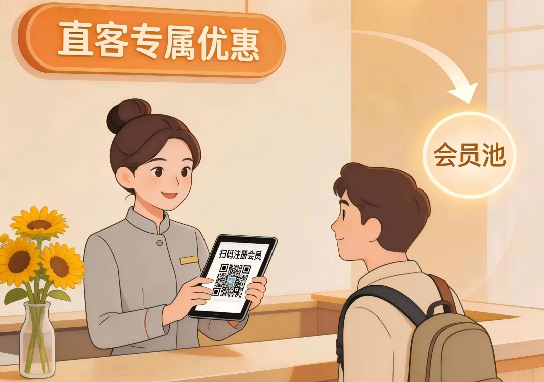 3. 流量承接与转化:加强OTA渠道到店客的承接与转化,前台人员主动引导OTA到店客注册会员、添加企业微信,告知会员专属权益与直客预订优惠,实现“OTA引流、私域沉淀”,将短期流量转化为长期私域用户,降低对OTA渠道的持续依赖。