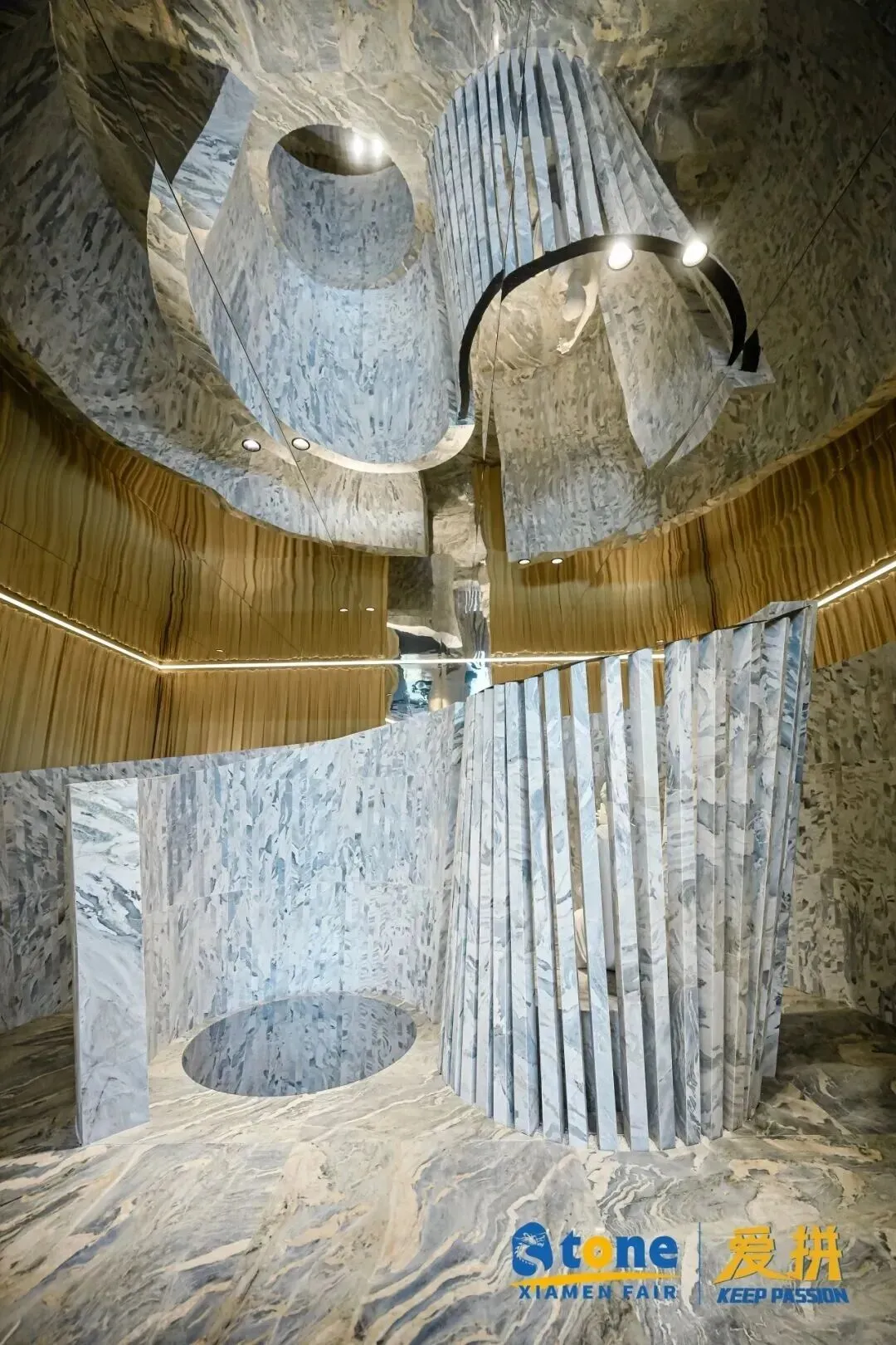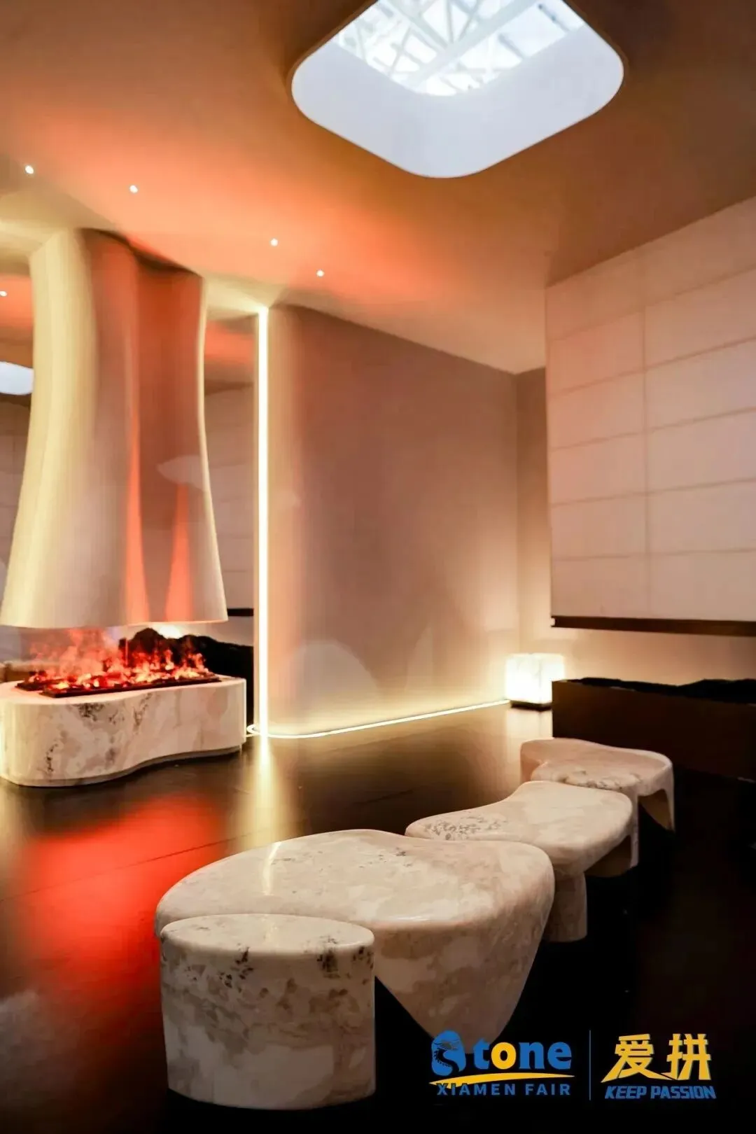 本届展会人居空间设计展以“石材的感官剧场”为主题,展现了石材在视觉、触觉、氛围营造上的多元价值;设计师将石材从“辅助建材”升级为“空间核心表达元素”,核心趋势为全空间应用、风格化定制、感官化设计、跨界混搭。