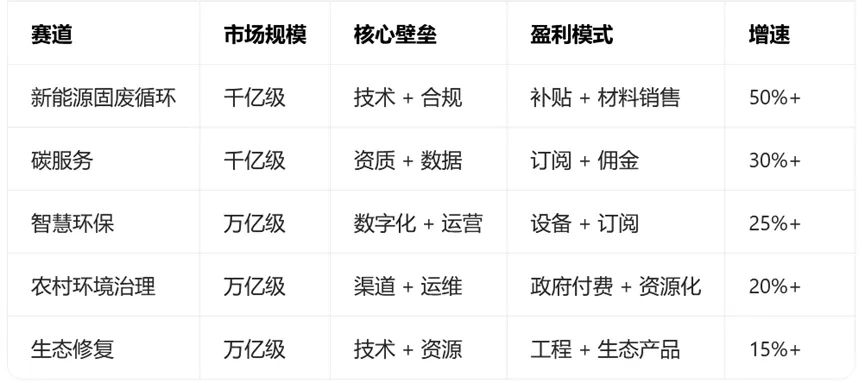 生态环境行业的蓝海业务,核心是固废资源化、双碳、智慧化、下沉市场、新污染物与生态修复、绿色金融六大方向,政策与市场双驱动、盈利模式更可持续。以下按赛道拆解核心机会、模式与价值: