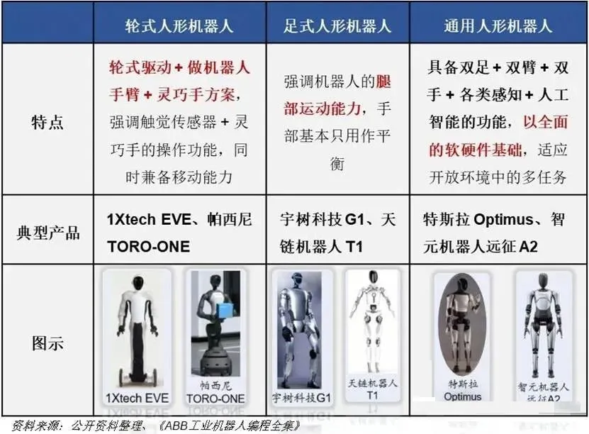 AI技术的突破以及老龄化的加剧,使人形机器人成为未来的重要发展去向 ,预计2025年进入量产时期 ,2026年商业化应用会迎来爆发 ,当前主流形态有轮式、足式与通用人形机器人这三类 。