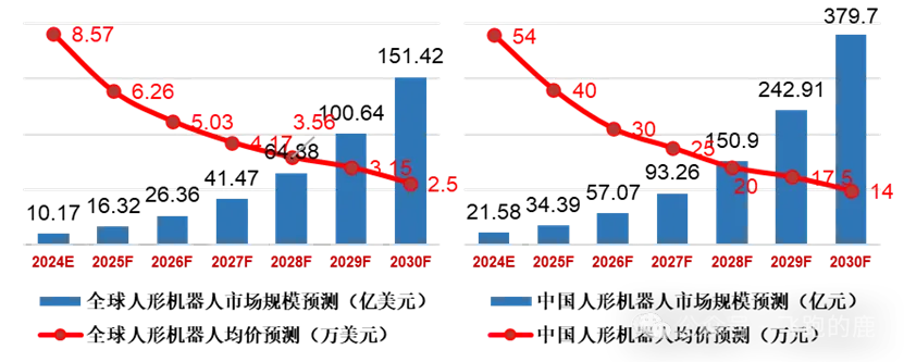 特斯拉Optimus步入试制阶段,目标产量处于5000至10000台之间 ,现已预订1万至1.2万台零部件,国内产业链发展势头迅猛,因受益于政策扶持与技术突破,其增速预计会超过全球水平,预计在2030年中国人形机器人市场规模将近380亿元 ,年复合增长率超过61%,销量从0.4万台增长至27.12万台,全球市场有望达到150亿美元,年复合增长率超过56%,销量从1.19万台增长至60.57万台,呈现出高速增长的态势。
