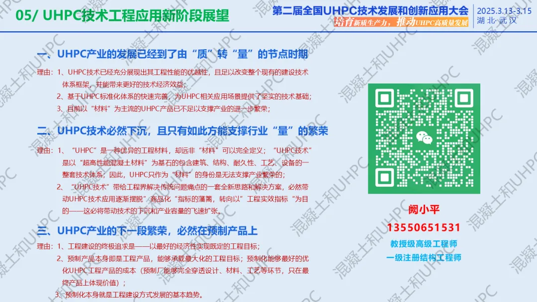 由CCPA-UHPC分会主办的2025年行业大会——“第二届全国UHPC技术发展和创新应用大会”于2025年3月13-15日在武汉成功举办。大会以“培育新质生产力,推动UHPC高质量发展”为主题,邀约了51个专题技术报告,组织了四场分论坛,分别围绕“UHPC结构创新与应用”“建筑创新与应用”“UHPC成型与施工技术”及“UHPC材料性能提升与应用场景开发”展开。会后,许多参会代表表示,大会的信息量极大,难以在短时间充分学习吸收,希望能分享报告PPT或视频供进一步学习。经征询大会各位报告人的意愿,获得许可的部分报告PPT或视频将在本公众号上陆续发布,敬请关注。