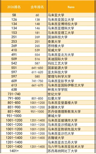 莫纳什分校(QS37)、马来亚(QS58)、诺丁汉分校(QS97)均在26上海落户名单中