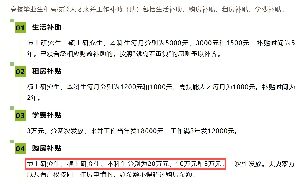 对于打算长期扎根国内的留学生而言,购房补贴是相当有分量的支持。