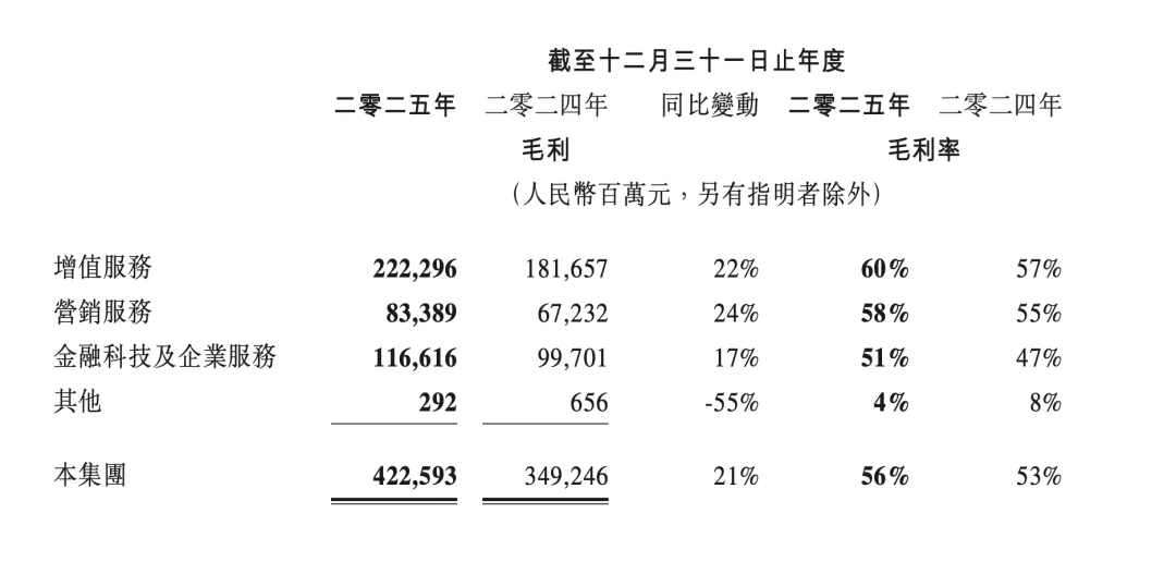 增值服务(主要是游戏和社交网络):贡献了3692.81亿元,占总收入的49%,是当之无愧的半壁江山。尤其是《三角洲行动》等游戏的成功,拉动了业绩。