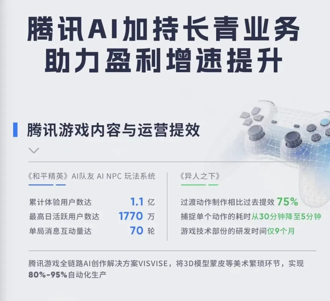看似含蓄,实则AI已经渗透至游戏业务的全流程,成为业务增长的重要驱动之一,看到这还有人敢说腾讯在AI竞争中落后了?