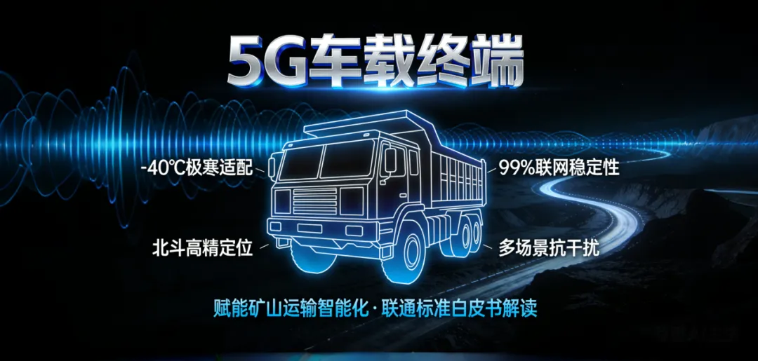 在矿山智能化转型浪潮中,矿用车辆的网联化、自动化升级成为核心突破口。作为连接矿山调度中心与作业车辆的关键枢纽,5G 车载终端的性能直接决定了矿山运输的效率、安全与智能化水平。中国联通最新发布的《5G 车载终端白皮书》(以下简称《白皮书》),系统梳理了车载终端的国内外认证要求、技术规范与重点能力指标,为矿用车辆 5G 终端的研发、选型与应用提供了重要遵循。本文结合矿山应用场景特点,从技术标准、核心能力与行业价值三方面,对《白皮书》进行深度解读。