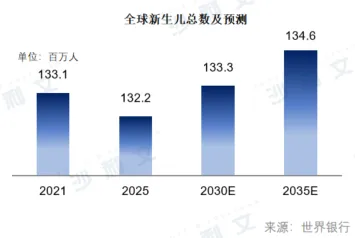 近年来,全球及中国出生人口数量整体呈下降趋势。根据世界银行数据,2021年全球新生儿数量约为1.33亿,2025年降至约1.32亿。